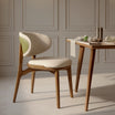 The Mistero Dining Chair has a round backrest that makes sitting comfortable and cosy. Its seat is supported by a stylish wooden frame that doubles as the chair’s legs, giving it a sturdy and elegant look.