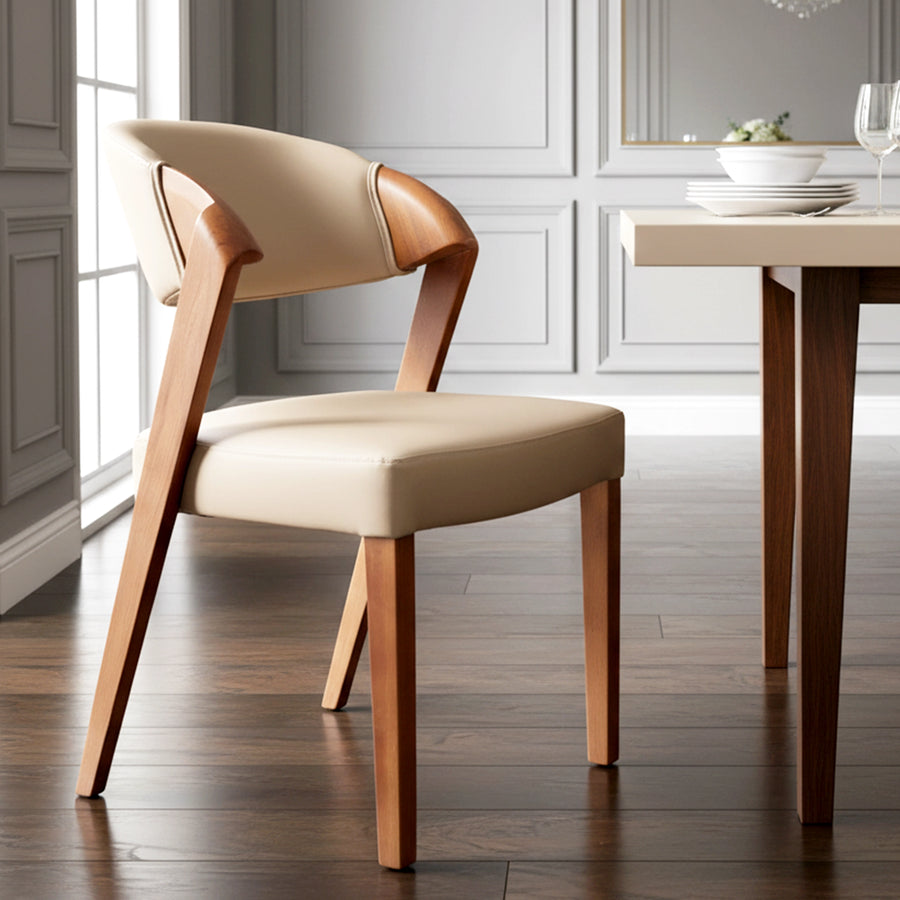 Our Tranquillo Dining Chair is incredibly comfortable, featuring a soft leather seat and sturdy wooden legs.